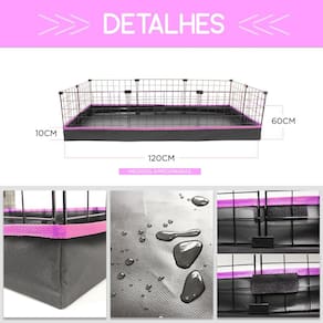 CERCADO ARAMADO PORQUINHO DA ÍNDIA 60X120 CM PRETO COM BANDEJA HIGIÊNICA IMPERMEÁVELPara você que ama o seu Pet e deseja proporcionar o melhor lugar para ele, os cercados aramados são a sua melhor opção. Eles são compostos de telas aramadas de aço e conectivos de plástico, que é a combinação ideal para uma melhor organização, durabilidade e segurança para o seu animalzinho, além de se adaptar muito bem ao ambiente.É importante que o Pet tenha espaço suficiente para ficar confortável no seu dia a dia, por isso a escolha do cercado deve ser feita com cuidado.Nesse modelo, o cercadinho pet acompanha um tapete higiênico para facilitar a limpeza do espaço. Além desse benefício, a bandeja para cercado oferece outras vantagens como a facilidade para guardar e manusear, seu encaixe perfeito e o fato de ser impermeável, não absorvendo líquidos.RECOMENDAÇÕES DE USO:- Tamanho ideal para até 3 Porquinhos da ÍndiaDIMENSÕES APROXIMADAS: - Largura: 60cm - Comprimento: 120cm - Altura: 30cmCARACTERÍSTICAS: - Cor: Preto - Material: Aço - Telas: 30x30cm e 30x40cm - Malha: 5cm - Modelo: Simples - Forração: Tapete Higiênico - Fundo com Telas: Não* Recomendamos que sempre verifique antes da escolha se o seu PET não atravessa a malha das telas (buracos) e/ou se ele não salta pelo cercado.* Possuímos os mais variados tipos de cercados em modelos e tamanhosITENS INCLUSOS:- Kit de telas e conectivos para montagem de um cercado aramado 60x120x30cm- 01 Tapete Bandeja Higiênico * Procurou um modelo e não encontrou? Tem algum projeto específico? Não sabe como aumentar seu cercado? Deixe-nos saber e vamos te ajudar!OBSERVAÇÕES:- O produto vai desmontado para ser montado no local e igual a imagem do anúncio;- Recomendamos para porquinhos da índia e coelhos, cercados com forração (Soft/Lona/Polionda/Tapete Higiênico);- Para colocação dos conectivos é preciso fazer um pouco de pressão, por isso sugerimos o uso de um martelinho de borracha (não acompanha o produto). - Imagens ilustrativas - Não nos responsabilizamos pelo uso inadequado do produtoNão deixe de conhecer nossos outros produtos! Marca: Iguanna