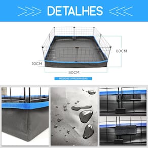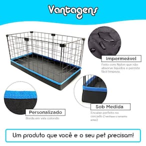 CERCADO ARAMADO PORQUINHO DA ÍNDIA 80X80 CM PRETO COM BANDEJA HIGIÊNICA IMPERMEÁVELPara você que ama o seu Pet e deseja proporcionar o melhor lugar para ele, os cercados aramados são a sua melhor opção. Eles são compostos de telas aramadas de aço e conectivos de plástico, que é a combinação ideal para uma melhor organização, durabilidade e segurança para o seu animalzinho, além de se adaptar muito bem ao ambiente.É importante que o Pet tenha espaço suficiente para ficar confortável no seu dia a dia, por isso a escolha do cercado deve ser feita com cuidado.Nesse modelo, o cercadinho pet acompanha um tapete higiênico para facilitar a limpeza do espaço. Além desse benefício, a bandeja para cercado oferece outras vantagens como a facilidade para guardar e manusear, seu encaixe perfeito e o fato de ser impermeável, não absorvendo líquidos.RECOMENDAÇÕES DE USO:- Tamanho ideal para até 2 Porquinhos da ÍndiaDIMENSÕES APROXIMADAS: - Largura: 80cm - Comprimento: 80cm - Altura: 30cmCARACTERÍSTICAS: - Cor: Preto - Material: Aço - Telas: 30x40cm - Malha: 5cm - Modelo: Simples - Forração: Tapete Higiênico - Fundo com Telas: Não* Recomendamos que sempre verifique antes da escolha se o seu PET não atravessa a malha das telas (buracos) e/ou se ele não salta pelo cercado.* Possuímos os mais variados tipos de cercados em modelos e tamanhosITENS INCLUSOS:- Kit de telas e conectivos para montagem de um cercado aramado 80x80x30cm- 01 Tapete Bandeja Higiênico * Procurou um modelo e não encontrou? Tem algum projeto específico? Não sabe como aumentar seu cercado? Deixe-nos saber e vamos te ajudar!OBSERVAÇÕES:- O produto vai desmontado para ser montado no local e igual a imagem do anúncio;- Recomendamos para porquinhos da índia e coelhos, cercados com forração (Soft/Lona/Polionda/Tapete Higiênico);- Para colocação dos conectivos é preciso fazer um pouco de pressão, por isso sugerimos o uso de um martelinho de borracha (não acompanha o produto). - Imagens ilustrativas - Não nos responsabilizamos pelo uso inadequado do produtoNão deixe de conhecer nossos outros produtos! Marca: Iguanna