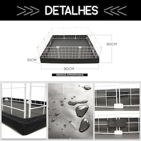 CERCADO ARAMADO PORQUINHO DA ÍNDIA 90X90 CM BRANCO COM BANDEJA HIGIÊNICA IMPERMEÁVELPara você que ama o seu Pet e deseja proporcionar o melhor lugar para ele, os cercados aramados são a sua melhor opção. Eles são compostos de telas aramadas de aço e conectivos de plástico, que é a combinação ideal para uma melhor organização, durabilidade e segurança para o seu animalzinho, além de se adaptar muito bem ao ambiente.É importante que o Pet tenha espaço suficiente para ficar confortável no seu dia a dia, por isso a escolha do cercado deve ser feita com cuidado.Nesse modelo, o cercadinho pet acompanha um tapete higiênico para facilitar a limpeza do espaço. Além desse benefício, a bandeja para cercado oferece outras vantagens como a facilidade para guardar e manusear, seu encaixe perfeito e o fato de ser impermeável, não absorvendo líquidos.RECOMENDAÇÕES DE USO:- Tamanho ideal para até 3 Porquinhos da ÍndiaDIMENSÕES APROXIMADAS: - Largura: 90cm - Comprimento: 90cm - Altura: 30cmCARACTERÍSTICAS: - Cor: Branco - Material: Aço - Telas: 30x30cm - Malha: 5cm - Modelo: Simples - Forração: Tapete Higiênico - Fundo com Telas: Não* Recomendamos que sempre verifique antes da escolha se o seu PET não atravessa a malha das telas (buracos) e/ou se ele não salta pelo cercado.* Possuímos os mais variados tipos de cercados em modelos e tamanhosITENS INCLUSOS:- Kit de telas e conectivos para montagem de um cercado aramado 90x90x30cm- 01 Tapete Bandeja Higiênico * Procurou um modelo e não encontrou? Tem algum projeto específico? Não sabe como aumentar seu cercado? Deixe-nos saber e vamos te ajudar!OBSERVAÇÕES:- O produto vai desmontado para ser montado no local e igual a imagem do anúncio;- Recomendamos para porquinhos da índia e coelhos, cercados com forração (Soft/Lona/Polionda/Tapete Higiênico);- Para colocação dos conectivos é preciso fazer um pouco de pressão, por isso sugerimos o uso de um martelinho de borracha (não acompanha o produto). - Imagens ilustrativas - Não nos responsabilizamos pelo uso inadequado do produtoNão deixe de conhecer nossos outros produtos! Marca: Iguanna