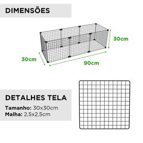 CERCADO ARAMADO PET PORQUINHO DA ÍNDIA HAMSTER TWISTER 30x90x30 MALHA 2,5x2,5 PRETOPara você que ama o seu pet e deseja proporcionar o melhor lugar para ele, os cercados aramados são a sua melhor opção. Eles são compostos de telas aramadas de aço e conectivos de plástico, que é a combinação ideal para uma melhor organização, durabilidade e segurança para o seu animalzinho, além de se adaptar muito bem ao ambiente.É importante que o pet tenha espaço suficiente para ficar confortável no seu dia a dia, por isso a escolha do cercado deve ser feita com cuidado.DIMENSÕES APROXIMADAS: - Largura: 30cm - Comprimento: 90cm - Altura: 30cmCARACTERÍSTICAS: - Cor: Preto - Material: Aço - Telas: 30x30cm - Malha: 2,5cm - Modelo: Simples - Forração: Não Possui - Fundo com Telas: Não* Recomendamos que sempre verifique antes da escolha se o seu PET não atravessa a malha das telas (buracos) e/ou se ele não salta pelo cercado.* Possuímos os mais variados tipos de cercados em modelos e tamanhosITENS INCLUSOS:- Kit de telas e conectivos para montagem de um cercado aramado * Procurou um modelo e não encontrou? Tem algum projeto específico? Não sabe como aumentar seu cercado? Deixe-nos saber e vamos te ajudar!OBSERVAÇÕES:- O produto vai desmontado para ser montado no local e igual a imagem do anúncio;- Recomendamos para porquinhos da índia e coelhos, cercados com forração (Soft/Lona/Polionda/Tapete Higiênico);- Para colocação dos conectivos é preciso fazer um pouco de pressão, por isso sugerimos o uso de um martelinho de borracha (não acompanha o produto). - Imagens ilustrativas - Não nos responsabilizamos pelo uso inadequado do produtoNão deixe de conhecer nossos outros produtos! Marca: IGUANNA