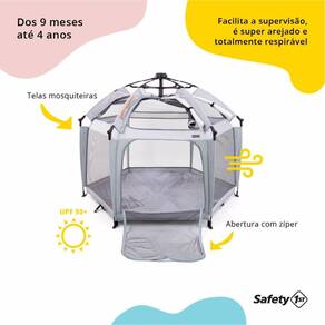 Como especialistas em segurança, nós da Safety 1st sabemos que manter as crianças entretidas e protegidas é o desejo de mães ou pais também nos momentos de lazer e brincadeiras. Divertido e prático, o Cercado Tenda Instapop da Safety 1st, pode ser utilizado em ambientes internos ou externos, é superleve, pesa apenas 3,5 kg, vem com bolsa de transporte e pode ser levado à praia, jardim, campo, varanda etc.