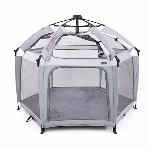 Fácil de carregar e montável em instantes, basta abrir e pronto! Afinal, nos momentos de lazer com as crianças, contar com a facilidade de uma montagem totalmente descomplicada é perfeito, não é mesmo? Além disso, como segurança vem em primeiro lugar, o cercado possui uma trava com indicador que fica verde quando acionado, isso é praticidade e tranquilidade total. Todo em tela facilitando a supervisão, é super arejado e totalmente respirável, junto com os tecidos com FPS UV50+, proporciona proteção extra para que a única preocupação seja quantas brincadeiras inventar dentro do cercadinho. Possui também uma portinha em tela com zíper e trava, para facilitar ou limitar o acesso, quando quiser abra as janelinhas na parte superior e deixe o sol entrar. A Tenda Cercado Instapop não tem limitações de peso, então leve brinquedos, conte histórias, relaxe e aproveite estes momentos especiais com seu filho.