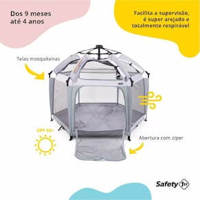 Como especialistas em segurança, nós da Safety 1st sabemos que manter as crianças entretidas e protegidas é o desejo de mães ou pais também nos momentos de lazer e brincadeiras. Divertido e prático, o Cercado Tenda Instapop da Safety 1st, pode ser utilizado em ambientes internos ou externos, é superleve, pesa apenas 3,5 kg, vem com bolsa de transporte e pode ser levado à praia, jardim, campo, varanda etc.