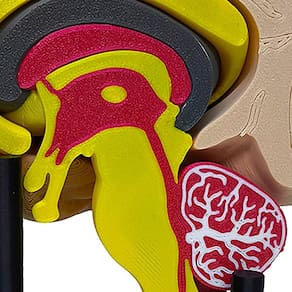 Este modelo anatômico 3D é uma representação excepcional do cérebro humano, destacando o tronco encefálico, cerebelo e medula espinhal.