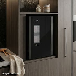 Compacta e moderna, a adega climatizada é ideal para quem busca sofisticação e conservação profissional para suas bebidas.