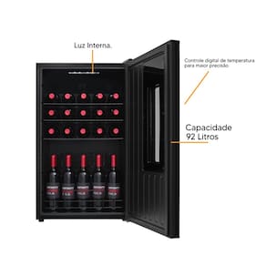 Com capacidade de 92 litros, a adega oferece espaço adequado para armazenar diversas garrafas com organização e praticidade. O equipamento também conta com baixo consumo de energia, tornando-se uma opção eficiente para uso contínuo.