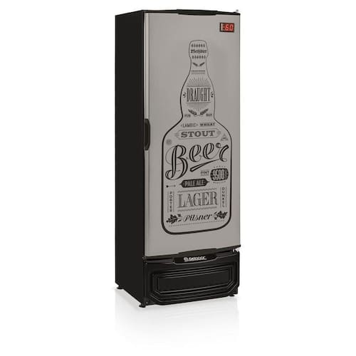 Refrigeração de Cervejas e Bebidas (Água, Sucos e Refrigerantes) Temperatura regulável: -6º, -4º, +1ºC ou +3ºC (Modo Economia), através de controlador eletrônico digital com indicador digital de temperatura e degelo automático (frost free) Refrigeração: Ar forçado com serpentina aletada de cobre Porta cega revestida em aço tipo inox com fechamento automático Prateleiras aramadas: 3 níveis reguláveis Revestimento externo: Porta cega em aço revestido Tipo Inox, com fechamento automático Pés reguláveis *Adesivo sujeito a alteração