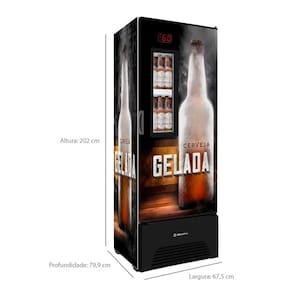 Características: Marca: Metalfrio Modelo: VN50AF Tipo: Cervejeira Capacidade: 574 litros Capacidade de armazenamento: 729 latas de 269ml | 576 latas de 350ml | 384 latas de 473ml | 320 garrafas de 355ml | 196 garrafas 600ml | 108 garrafas de 1l Painel: Digital Tipo de degelo: Frost Free Quantidade de prateleiras: 4 prateleira Temperatura: -2ºC a -6ºC Gás refrigerante: R290 Potência: 535W