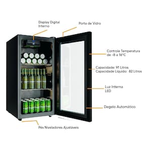 Com função 3 em 1 — cervejeira, refrigerador e refrigerador de bebidas —, ela oferece controle total de temperatura através do display digital.