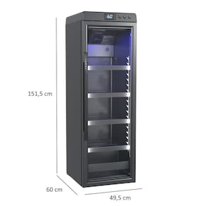 Tipo: Cervejeira Marca: Venax Controlador de temperatura: Digital, 4 opções pré-programadas: (R1: -8C a -4C) (R2: -6C a -2C) (R3: -1C a 3C) (R4: 2C a 6C) Sistema de refrigeração: Compressor Gás refrigerante: R134a Iluminação interna: Led azul Iluminação na porta: Led branco Porta: Vidro duplo (LOW-E) Puxador da porta: Plástico Abertura da porta: Esquerda para direita Trava de abastecimento: Não Aquecimento da porta: Sim Prateleiras: 4 Reguláveis Evaporador: Ar forçado Gabinete interno: PSAI Gabinete externo: Aço revestido com pintura eletrostática Degelo: Automático Dreno: Traseiro Recipiente de degelo: Sim Pés: Frontais reguláveis e traseiros com rolete Capacidade de Armazenamento: Lata 350ml: 204 / 473ml: 148 / Longneck 355ml: 108 / Garrafa 600ml: 71 / 1L: 40 Medidas do produto: Altura 151,5cm - Largura 49,5cm - Profundidade 60cm