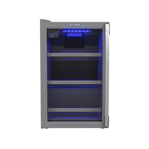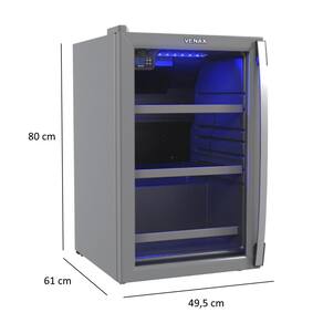 Tipo: Cervejeira Marca: Venax Controlador de temperatura: Digital, regulável de -6C a 0C Sistema de refrigeração: Compressor Gás refrigerante: R134a Iluminação interna: Led azul Porta: Vidro duplo (LOW-E) Puxador da porta: Alumínio Abertura da porta: Direita para esquerda Trava de abastecimento: Não Aquecimento da porta: Sim Prateleiras: 2 Reguláveis Evaporador: Ar forçado Gabinete interno: PSAI Gabinete externo: Aço revestido com pintura eletrostática Degelo: Automático Dreno: Traseiro Recipiente de degelo: Sim Pés: Frontais reguláveis e traseiros com rolete Capacidade de Armazenamento: Lata 350ml: 96 / 473ml: 78 / Longneck 355ml: 48 / Garrafa 600ml: 34 / 1L: 20 Medidas do produto: Altura 80cm - Largura 49,5cm - Profundidade 61cm