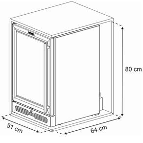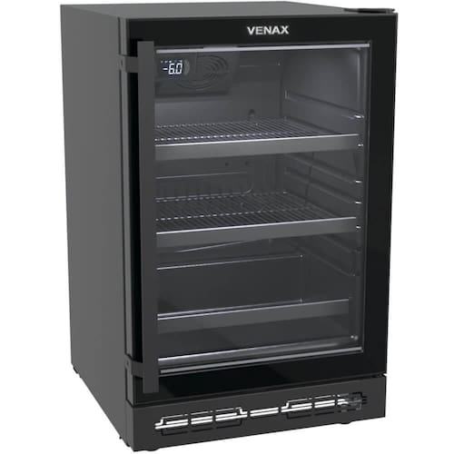 Cervejeira Venax Top Light-In de embutir com capacidade de 100 litros, controlador digital de temperatura (0C a -6C), iluminação interna LED, porta de vidro duplo com aquecimento e puxador de alumínio. Degelo automático e sistema de refrigeração com compressor.Capacidade total de garrafas