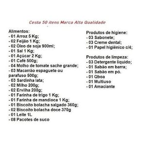 Cesta básica completa com produto de limpeza 50 itens Não deixe de perguntar qualquer dúvida, sempre estaremos disponíveis para lhe ajudar da melhor forma possível.