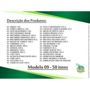 Cesta básica de alimentos completa e econômica com 50 itens Cesta básica de alimentos + higiene + limpeza 50 itens de qualidade Peso aprox. 22kg Embalagem caixa de papelão Fotos meramente ilustrativas. Obs: 1 imagem dos produtos reais que trabalhamos. Em caso de indisponibilidade de estoque, os produtos podem ser substituídos por marca similar. Em caso de dúvidas, nos envie perguntas. Estamos há 13 anos no mercado, seja mais um dos nossos clientes satisfeitos. Temos diversos modelos e valores de cestas. Para ver mais opções clique em ver mais anúncios do vendedor. Descrição dos produtos alimentos : 01-arroz 5 kg 02-feijão carioca 1 kg 02-açúcar refinado 1 kg 02-óleo refinado 900 ml 01-macarrão espaguete 500 g 01-macarrão parafuso 500 g 03-macarrão instantâneo 85 g 02-molho de tomate 340 g 01-sardinha 125 g 01-milho verde 200 g 01-ervilha 200 g 01-maionese 200 g 01-goiabada 300 g 01-café 500 g 01-achocolatado em pó 400 g 01-fubá 500 g 02-gelatina 35 g 01-creme de leite 200 g 01-leite condensado 395 g 03-caldo de carne/galinha 19 g 01-milho de pipoca 500 g 01-farofa pronta 250 g 05-refresco em pó 35 g 02-biscoito recheado 112 g 01-biscoito salgado 200 g 01-biscoito de maisena 200 g 01-sal refinado 1 kg 01-vinagre 750 ml Descrição dos produtos higiene + limpeza : 02-sabonete 85 g 01-creme dental 90 g 01-sabão em pedra 150 g 02-detergente 500 ml 01-aparelho de barbear kit com 2 und. 01-papel higiênico 4 rolos Embalagem caixa de papelão Após confirmação de pagamento enviaremos seu pedido em até 24 horas. Marca: Higipack