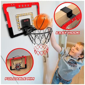 Instalação Simples e Baterias Inclusas: Nossa cesta de basquete foi projetada para ser fácil de instalar, com instruções claras e todas as ferramentas necessárias já inclusas. Basta pendurá-la sobre qualquer porta de tamanho padrão na sua casa, dormitório, escritório ou até mesmo na cerca do quintal. O design prático permite armazenar e mover a cesta com facilidade, para que você possa jogar basquete onde e quando quiser. Além disso, as baterias já estão inclusas, facilitando a diversão imediata!