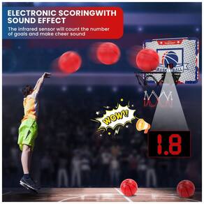 Placar eletrônico interativo: O conjunto de mini cesta de basquete infantil vem com um placar eletrônico que emite som de torcida para deixar a brincadeira ainda mais emocionante! A cada ponto marcado, o placar conta automaticamente e celebra com uma animação. Além disso, a mini cesta possui 3 modos de jogo: "Modo de Prática", "Competição entre 2 Jogadores" e "Modo Desafio", permitindo que as crianças evoluam nos níveis e se divirtam competindo com amigos e familiares!