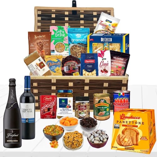 Celebre com sofisticação e sabor a cesta de natal ibiza premium traz uma seleção exclusiva de 24 itens gourmet, incluindo vinhos finos, doces deliciosos e produtos importados. O presente perfeito para tornar suas festas inesquecíveis e cheias de alegria