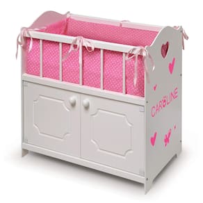 Limpe, limpe e lave à mão conforme necessário — Berço para bonecas de bom tamanho com armário de armazenamento — Inclui roupa de cama de tecido — Escondido ímãs mantêm as portas fechadas