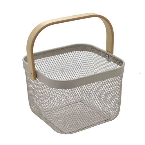 Cód: 15678-PL Cesta Decorativa em Metal com Alças Material: Metal e Madeira Dimensões: 23,5x23,5x18cm (CxLxP)