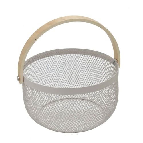 Cód: 15679-PL Cesta Decorativa em Metal com Alças Material: Metal e Madeira Dimensões: Ø25x15cm