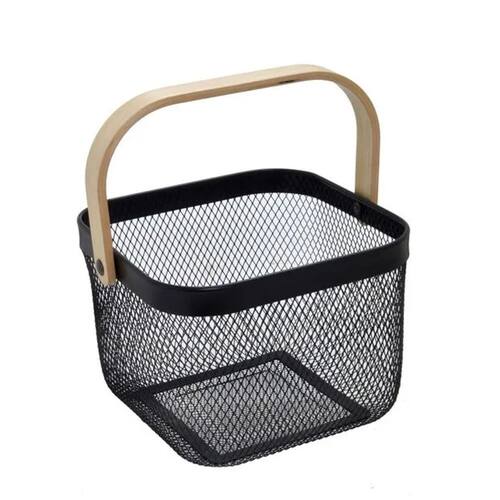 Cód: 15680-PL Cesta Decorativa de Metal Preto com Alças Material: Metal e Madeira Cor: Preto Dimensões: 23,5x23,5x18cm (CxLxP)