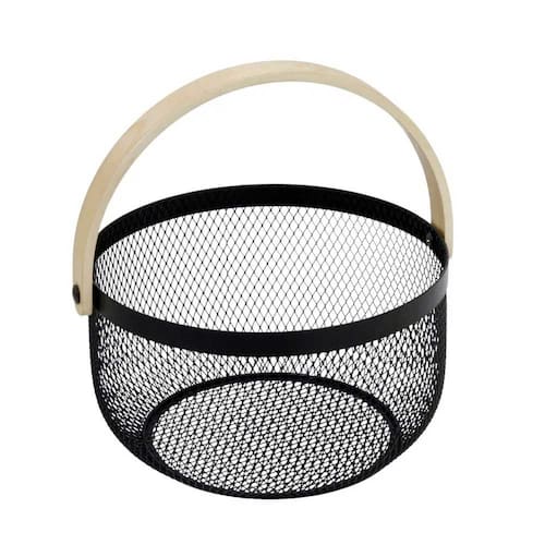Cód: 15681-PL Cesta Decorativa de Metal Preto com Alças Material: Metal e Madeira Cor: Preto Dimensões: Ø25x15cm