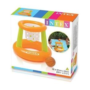 Cesta de basquete flutuante, medidas 67 cm X 55 cm de vinil muito resistente. Inclui uma bola de basquete inflável e kit de reparo. Diversão segura\nImagens meramente ilustrativas. Recomendado para crianças maiores de 3 anos.\nComposta por dois anéis infláveis, a cesta de basquete da Intex tem, ainda, 3 hastes infláveis de sustentação. E conta também com rede de PVC para que o jogo seja ainda mais realista. É só inflar o produto, juntar a criançada e praticar arremessos de curta e longa distância dentro da água.\nDimensões: 67 x 55 cm Material: vinil