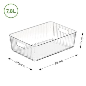 Organize com estilo e praticidade com a Cesta Maxi 7,8L New Retrô! Com o acabamento canelado que é tendência, esta cesta oferece organização e elegância em qualquer ambiente. Suas dimensões de 35 x 24,5 x 11 cm são ideais para armazenar objetos e mantimentos maiores, tornando-a perfeita para a lavanderia, despensa ou quarto. Feita em PET, um material ultra-resistente e durável, e com a aparência do vidro, mas com a resistência do plástico, a Cesta Maxi New Retrô é prática e fácil de manter. Pode ser usada no freezer ou na geladeira e a limpeza é simples, com água e sabão neutro. Parte da linha New Retrô, com produtos 100% recicláveis, a Coza valoriza a sustentabilidade. Adquira sua Cesta Maxi 7,8L New Retrô e adicione praticidade e beleza à sua organização de forma sustentável!