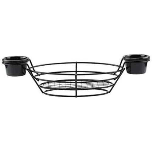 Cesta Oval Em Aço Inox Preto Com 2 Molheiras Em Melamina