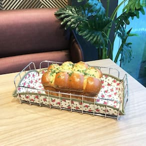 Pequenos cuidados com seu lar fazem toda a diferença. #Tecido Almofadado Decorado #Praticidade À Sua Mesa #Cesta Aramada Garantia: 6 meses / Peso: 245g / Cor: Cromado e colorido / Ref: CR430 Dimensões: 30cm (C) x 16cm (L) x 8cm (A) Cuidados: Não lavar com materiais abrasivos. Limpeza: O acúmulo de resíduos pode gerar oxidação, por isso a limpeza deve ser feita regularmente. A limpeza deve ser feita com flanela ou pano macio. Material: - Aço cromado: arame; - Tecido decorado: 100% algodão; - Poliuretano: espuma. Leve charme e praticidade à sua mesa de café da manhã. A cesta para pão é produzida em arame cromado e acompanha toalhinha decorada, sendo almofadada com espuma. Ela mantém o estilo tradicional das cestas para pães, higiênica. Sirva os pães, biscoitos e bolachas.