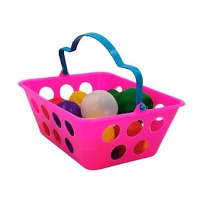 Acompanha uma cestinha plástica leve e durável, com alças práticas que facilitam o transporte e incentivam brincadeiras de faz de conta, como feira, cozinha ou mercado.