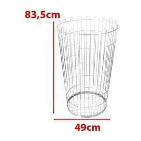 Cesto aramado 100 litros redondo Cesto aramado redondo - 100 litros Lixeira aramada altamente resistente ideal para escritórios, residências, condomínios, locais públicos e áreas externas. Cesto confeccionado em arames de 2,5, a 4 mm de aço carbono sae 1020 galvanizado. Cesto aramado capacidade de 100 litros. Medidas do cesto redondo: Altura: 84 cm Diâmetro: 49 cm Caso ainda possua alguma dúvida, não hesite em perguntar, estamos aqui para ajudá-lo a adquirir o produto certo para sua necessidade