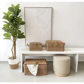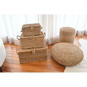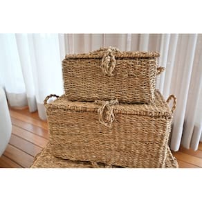 Cestos Seagrass Jolitex – Feitos à mão em fibras naturais, unem praticidade e beleza na organização. Leves, resistentes e com alças reforçadas, são ideais para guardar roupas, brinquedos ou objetos, deixando qualquer ambiente mais charmoso e funcional.