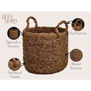 Cesto em fibra natural com alça: organize com estilo e simplicidade este cesto é confeccionado em fibra natural, proporcionando um toque rústico e charmoso ao seu espaço. Equipado com uma alça resistente, torna o transporte e manuseio fácil e conveniente.