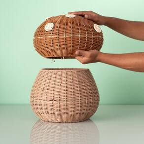 O Cesto com Tampa Cogumelo da Oikos é a solução perfeita para quem busca praticidade aliado ao estilo. Organize com charme e eficiência!
