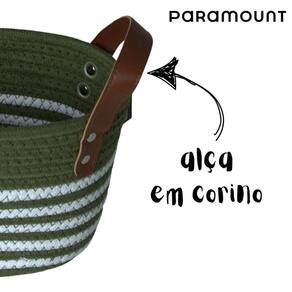 Cesto de Algodão Retangular com Alça Verde com Listras Brancas