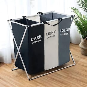 Multifuncional: Disponível em opções de 2 ou 3 seções, o cesto de roupa suja possibilita a separação eficiente entre roupas de adultos e crianças, além de permitir a organização por tipos, cores ou estado de limpeza. Pode também ser utilizado para armazenar outros objetos, como brinquedos e bolas.