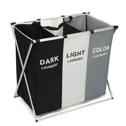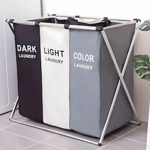 Multifuncional: Disponível em opções de 2 ou 3 seções, o cesto de roupa suja possibilita a separação eficiente entre roupas de adultos e crianças, além de permitir a organização por tipos, cores ou estado de limpeza. Pode também ser utilizado para armazenar outros objetos, como brinquedos e bolas.