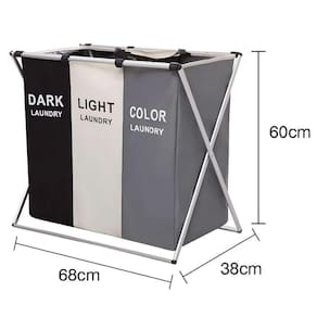 - Cor: Mostrada nas imagens - Material: Tecido Oxford - Dimensões Montadas (cm): 59,5 altura x 40 largura x 65,5 comprimento - Dimensões da Embalagem (cm): 12 altura x 7 largura x 70 comprimento - Peso (Três Seções): 950g - Capacidade Total: 15 kg de roupas Marca: Estoquee