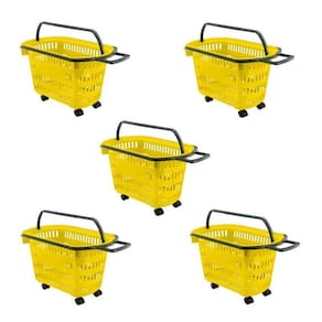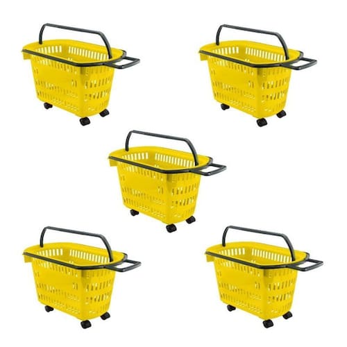 Kit com 5 cesto de compras d300 dellaplast 30l com rodas amarelo Cesta com alça e rodas, muito prática, pois permite que o cliente ao realizar sua compra, carregue diversos itens ao mesmo tempo, auto-serviço self-service . Rodízios 360, livre de ferrugem, silenciosos e design moderno. As cestas são empilháveis Ideal para estabelecimentos comerciais que desejam oferecer praticidade aos clientes, poupando espaço: supermercado, mercearias, farmácias, padarias, perfumarias, conveniência etc. Especificações: Produzidos em pp polipropileno ; Encaixável, empilháveis otimiza espaço Fácil higienização Dimensões axlxp : Altura: 39 cm Largura: 50 cm Profundidade: 34 cm Peso da cesta: 1,570 gr : 90 dias período legal Marca: Dellaplast Ean: 2960008523032