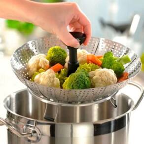 Para usar basta abrir o cesto, colocar um pouco de água numa panela ou tigela, colocar o alimento dentro do cesto e sem com a água, assim o alimento sera cozido no vapor.