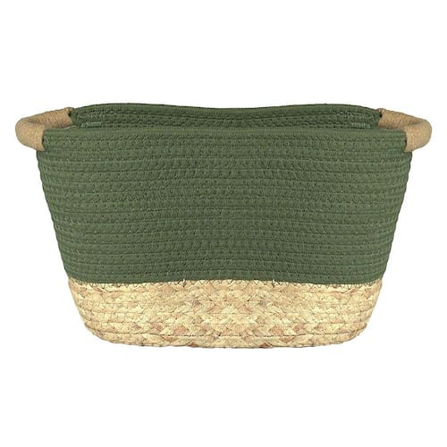 Cesto de Fibra Natural e Algodão com Alça Trançado Verde Esmeralda 20x21x38cm 3619 - Paramount - Dorémi Casa & Decor
