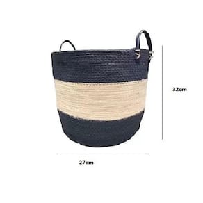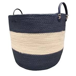 Cesto De Fibra Natural Oval Com Alça De Couro Etnias - Jolitex M -