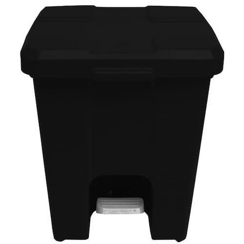 Cesto e tampa injetados em plástico polipropileno PP copolímero. O acionamento da tampa é feito através de pedal o que evita eventual risco de contaminação, a haste e pedal são confeccionados com plástico resistente.