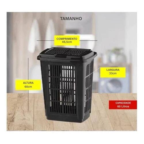 Cesto De Roupa 60 Litros Uninjet O Cesto de Roupa Uninjet é perfeito para lavanderias e áreas de serviço. O cesto possui diversos furos em toda sua extensão que mantém suas roupas arejadas, evitando mal odor, mofo e umidade, também possui uma tampa para proteger as roupas armazenadas. O cesto tem bordas laterais para facilitar o transporte, maior espaço interno, além de um design charmoso. Ele é muito prático e eficiente, ideal para organizar suas roupas ou acessórios domésticos. - DimensõesAltura: 60,00cmLargura: 33,00cmComprimento: 46,50cm