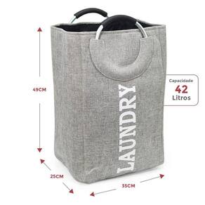 Cesto de Roupa Cinza Laundry Alça de Alumínio