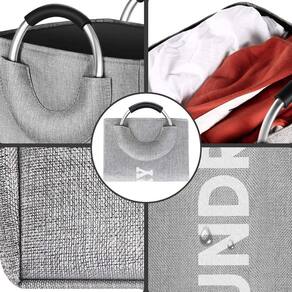 Cesto De Roupa Cinza Tipo Linho Laundry Alça De Alumínio