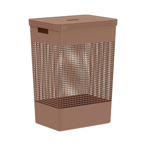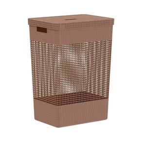 Cesto de Roupa com Tampa Grid Marrom Amêndoa 49L - Ou