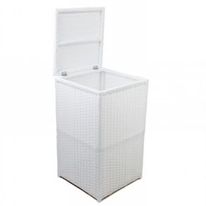 Medidas: 40cm comprimento x 40cm largura x 70cm altura . Cor: Branco. Utilidade: Organizador de Quarto, área externa e/ou banheiro. Conteúdo da Embalagem: Um baú cesto de roupa. Necessita Montagem: Não. Litragem: 112 litros. Composição/material: Madeira, Fibra Sintética e fundo em Mdf. Ean: 7898662380317 Marca: Não Informado