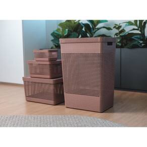 Cesto de Roupa Grid Marrom Amêndoa 49 L com Tampa 38 x 28 x 55,2 cm Ou - Na sua casa!